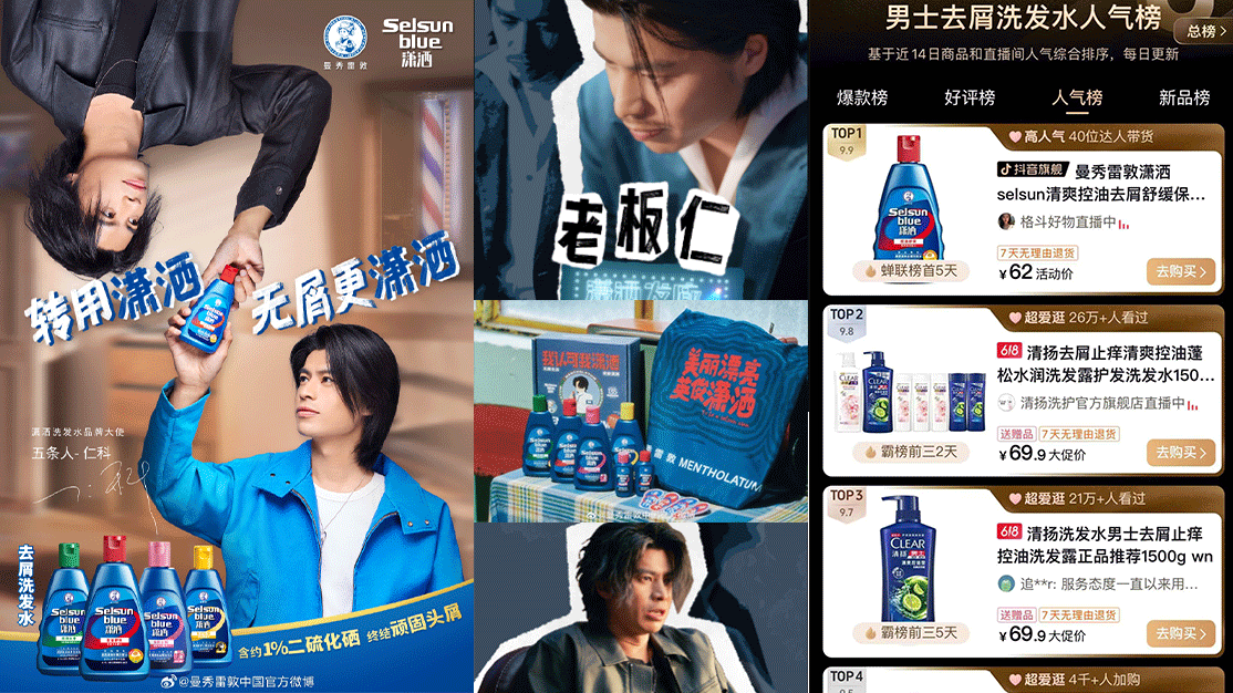 潇洒为曼秀雷敦集团旗下70年专业功能去屑洗发水品牌,希望进一步提升品牌辨识度和认知度,传播品牌概念“Switch to Selsun转用潇洒”和终结顽固头屑的功能卖点,并带动品牌618电商节销量增长,提高用户的忠诚度和黏性。我们围绕品牌概念,针对顽固头屑人群未被满足的需求,通过明星代言人合作、定制化洗脑传播内容及创意买赠周边,强化“强去屑功能”的品牌印记,实现差异化竞争,拉动618电商大促销售转化。